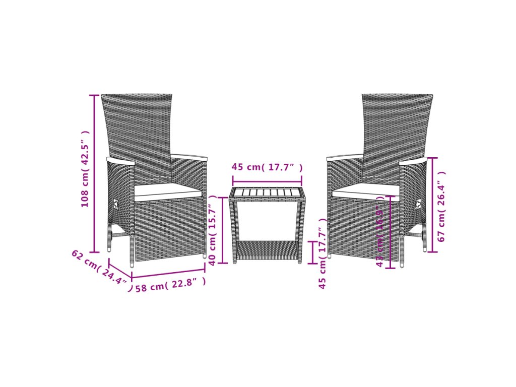 - Rozměry sezení: 58 x 62 x 108 cm (Š x H x V)