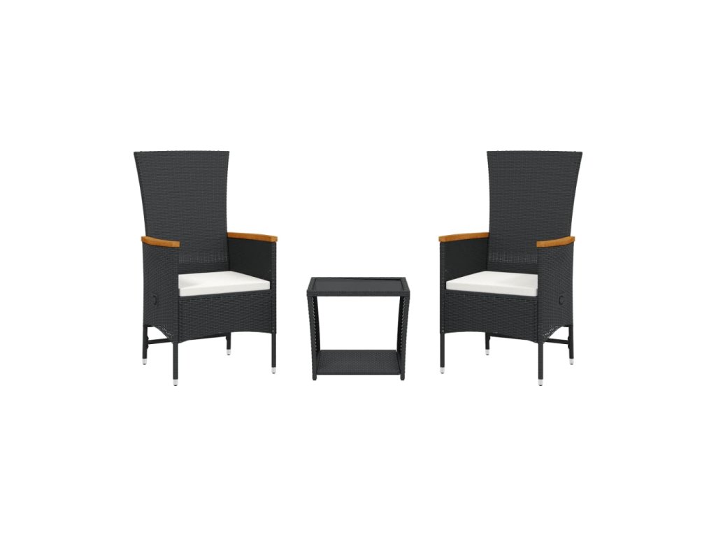 3dílný zahradní jídelní set s poduškami černý polyratan 3277542