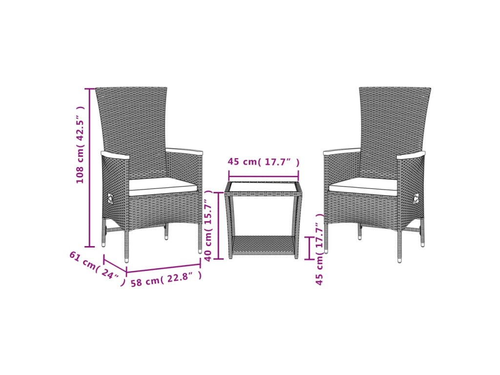 - Materiál: PE ratan, práškově lakovaná ocel, masivní akáciové dřevo s olejovou povrchovou úpravou