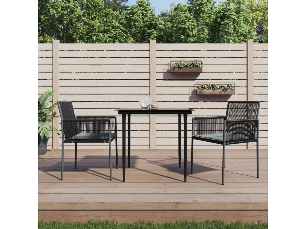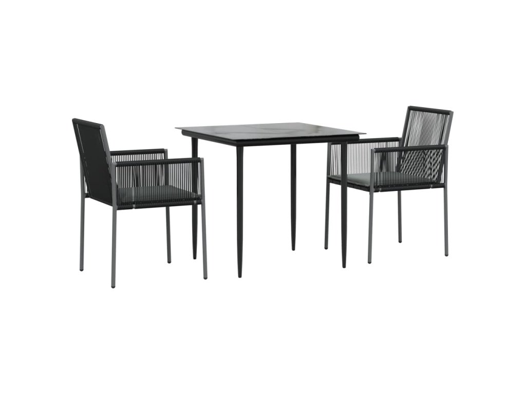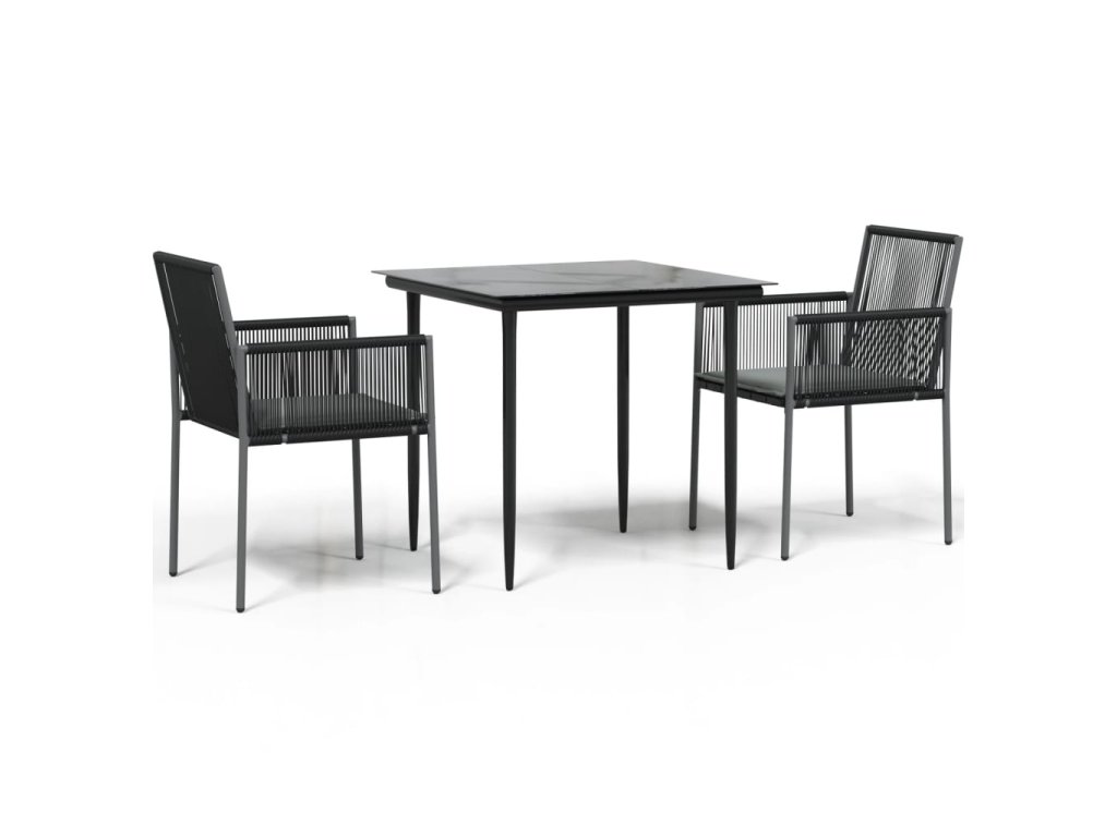 3dílný zahradní jídelní set s poduškami černý polyratan a ocel 3187065