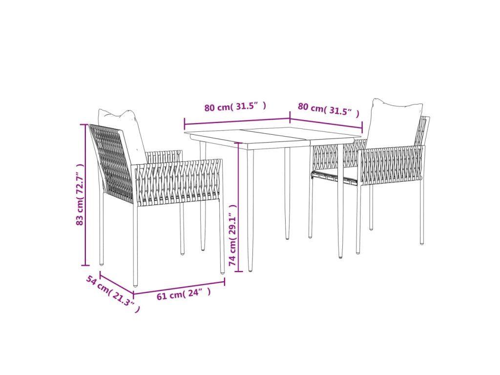 3dílný zahradní jídelní set s poduškami polyratan a ocel 3187049