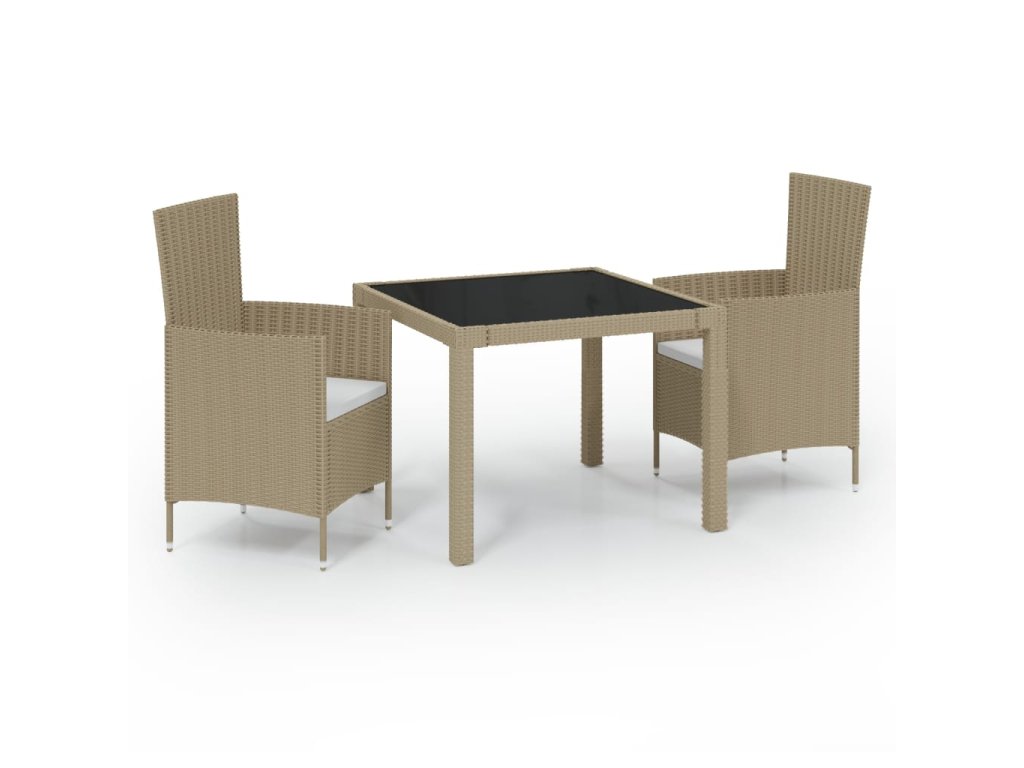 3dílný zahradní jídelní set s poduškami polyratan béžový 3094901