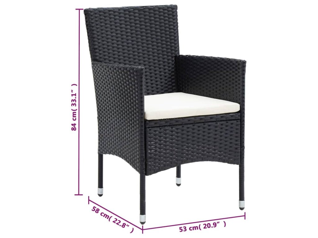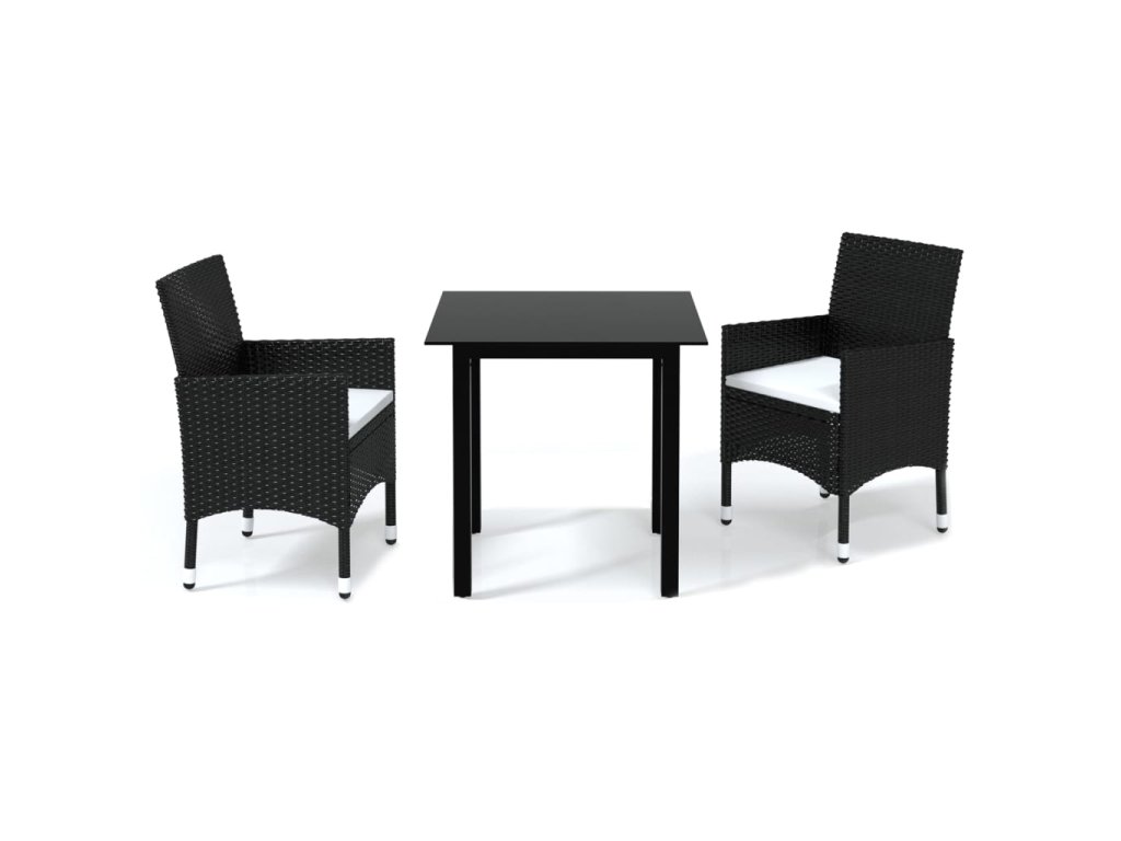 3dílný zahradní jídelní set s poduškami polyratan černý 3094973