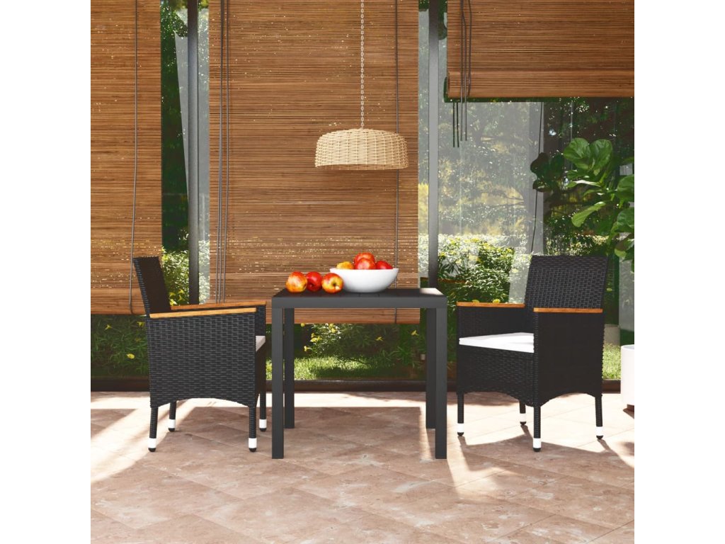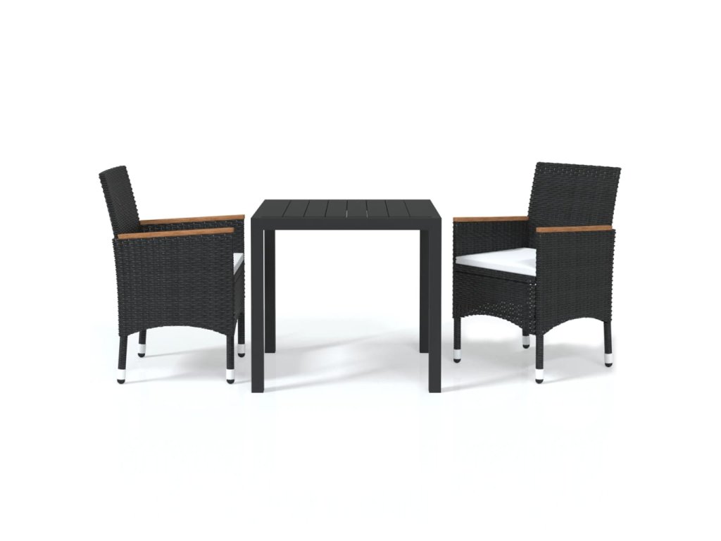 3dílný zahradní jídelní set s poduškami polyratan černý 3095015