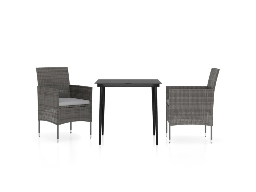 3dílný zahradní jídelní set s poduškami šedočerný 3099311