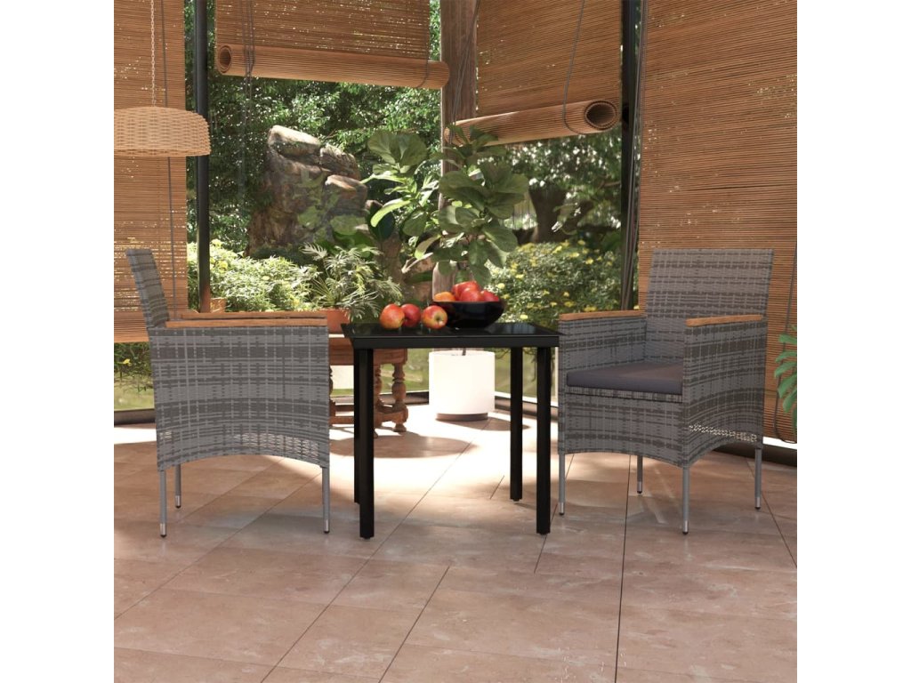 3dílný zahradní jídelní set s poduškami šedočerný 3099335