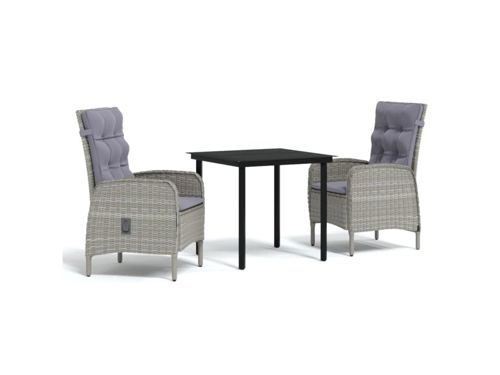 3dílný zahradní jídelní set s poduškami šedočerný 3099359