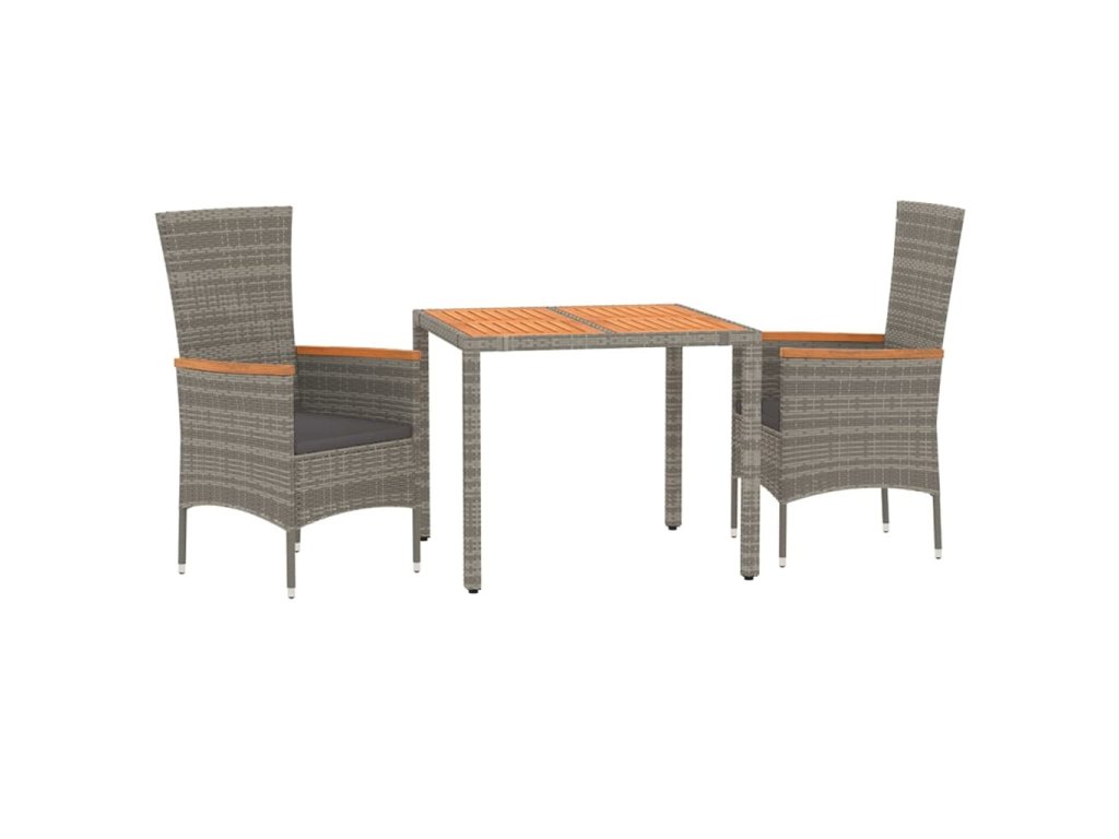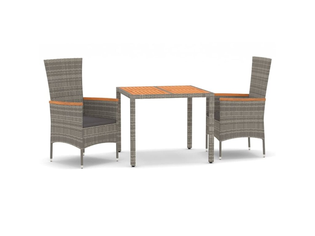 3dílný zahradní jídelní set s poduškami šedý polyratan 3157534