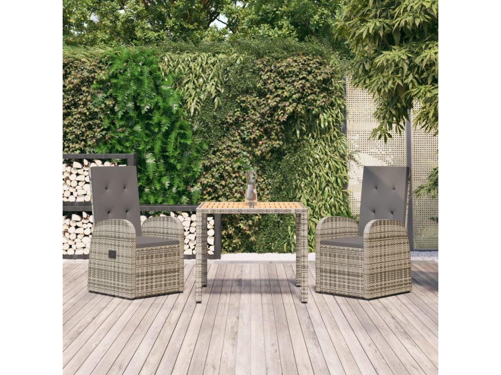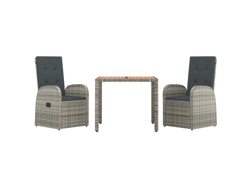 3dílný zahradní jídelní set s poduškami šedý polyratan 3157582