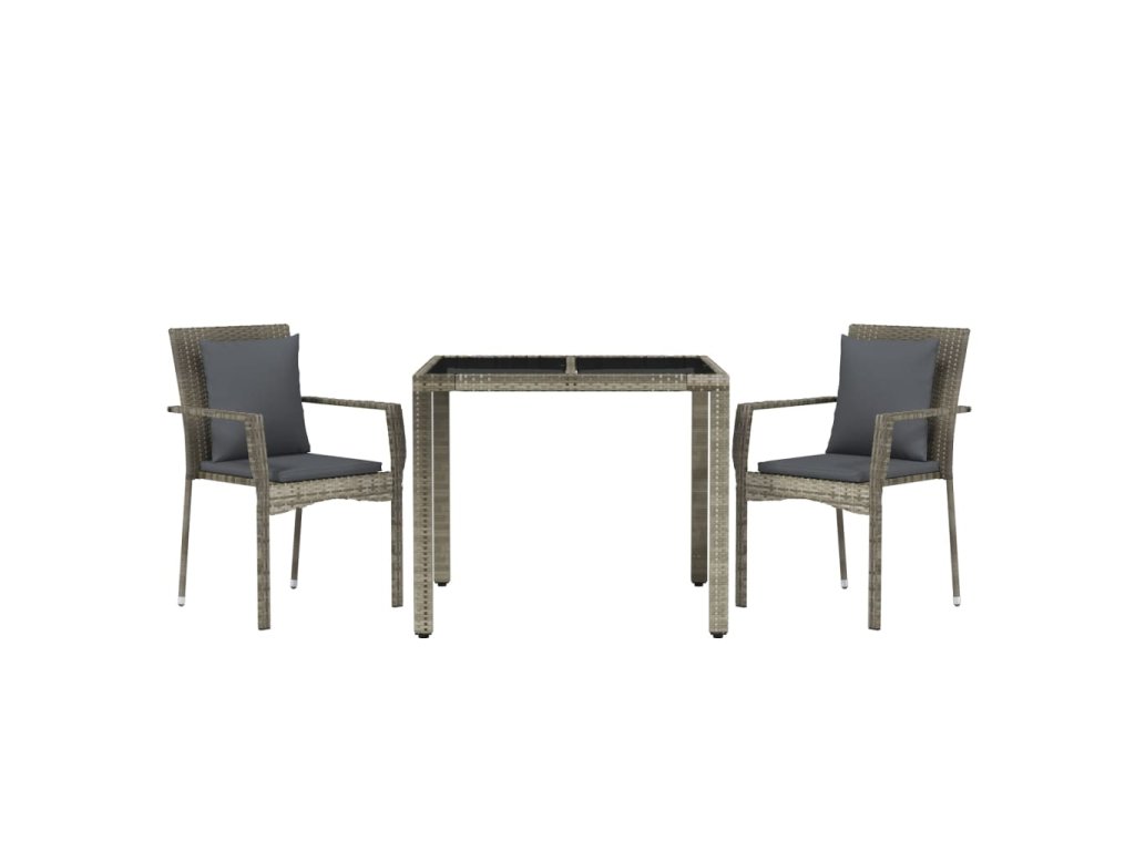 3dílný zahradní jídelní set s poduškami šedý polyratan 3157957