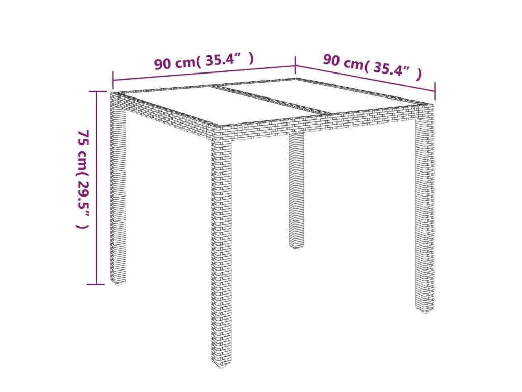 - Materiál: PE ratan, práškově lakovaná ocel, tvrzené sklo