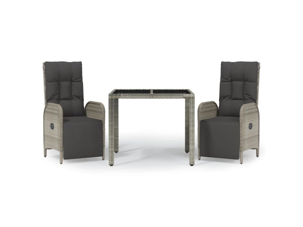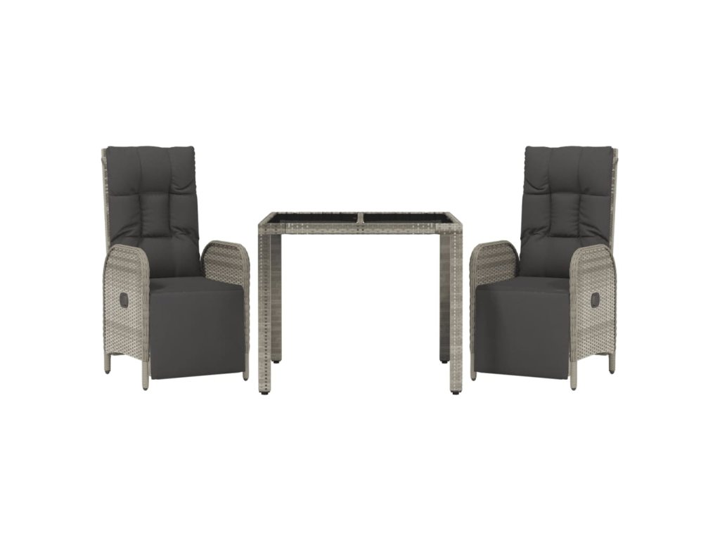 3dílný zahradní jídelní set s poduškami šedý polyratan 3185029