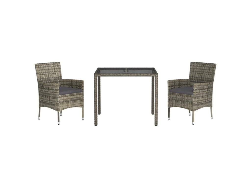 3dílný zahradní jídelní set s poduškami šedý polyratan 3187332