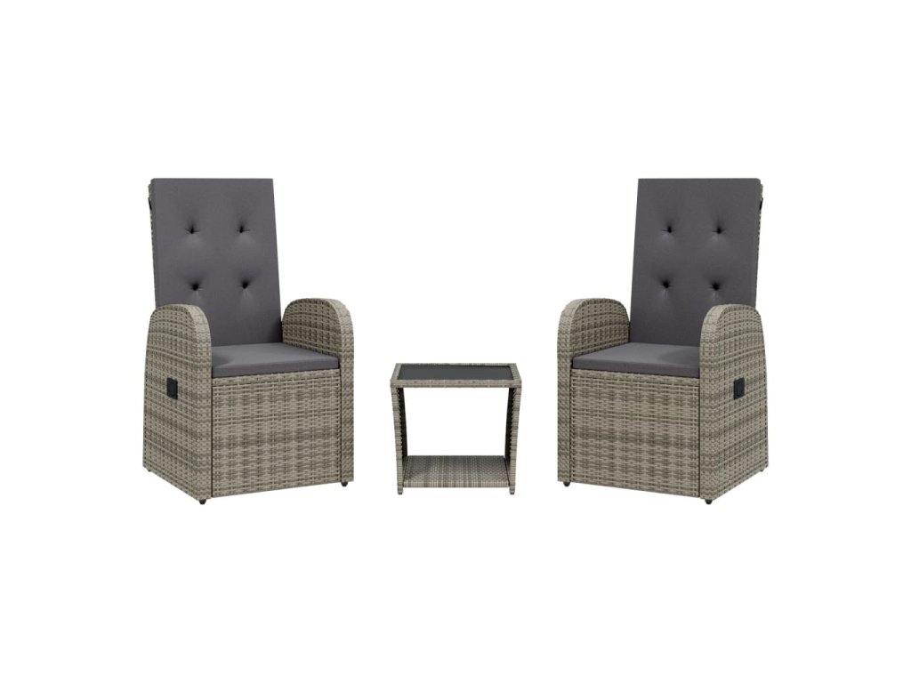 3dílný zahradní jídelní set s poduškami šedý polyratan 3277607