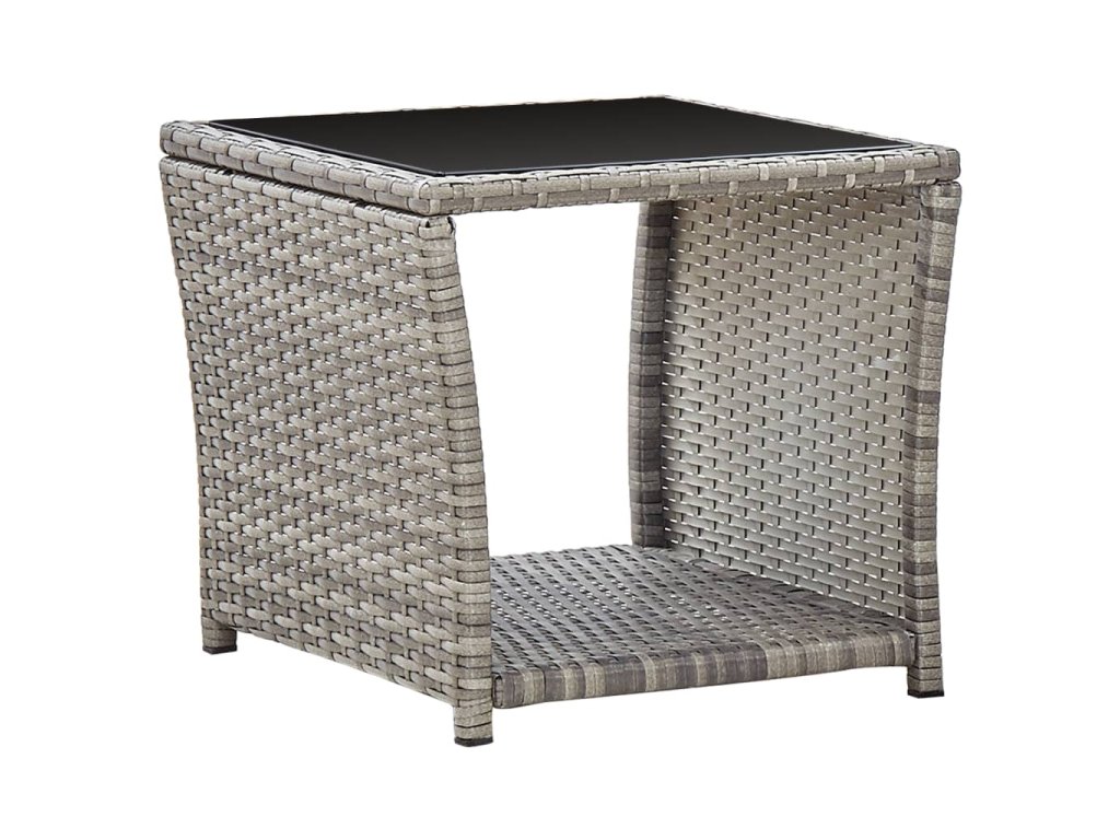 - Materiál: PE ratan, práškově lakovaná ocel, tvrzené sklo