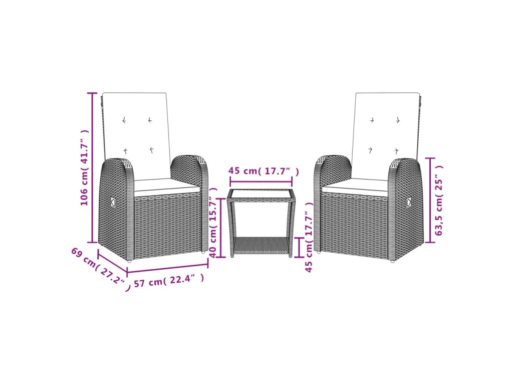 - Rozměry sezení: 57 x 69 x 106 cm (Š x H x V)