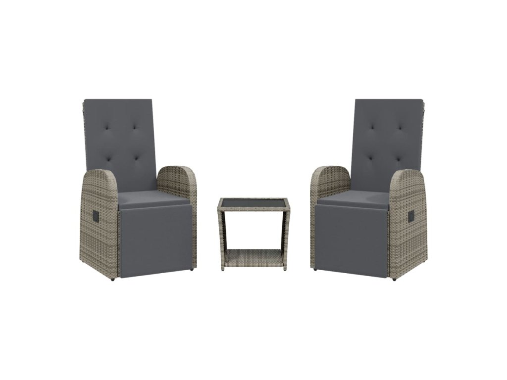 3dílný zahradní jídelní set s poduškami šedý polyratan 3277608