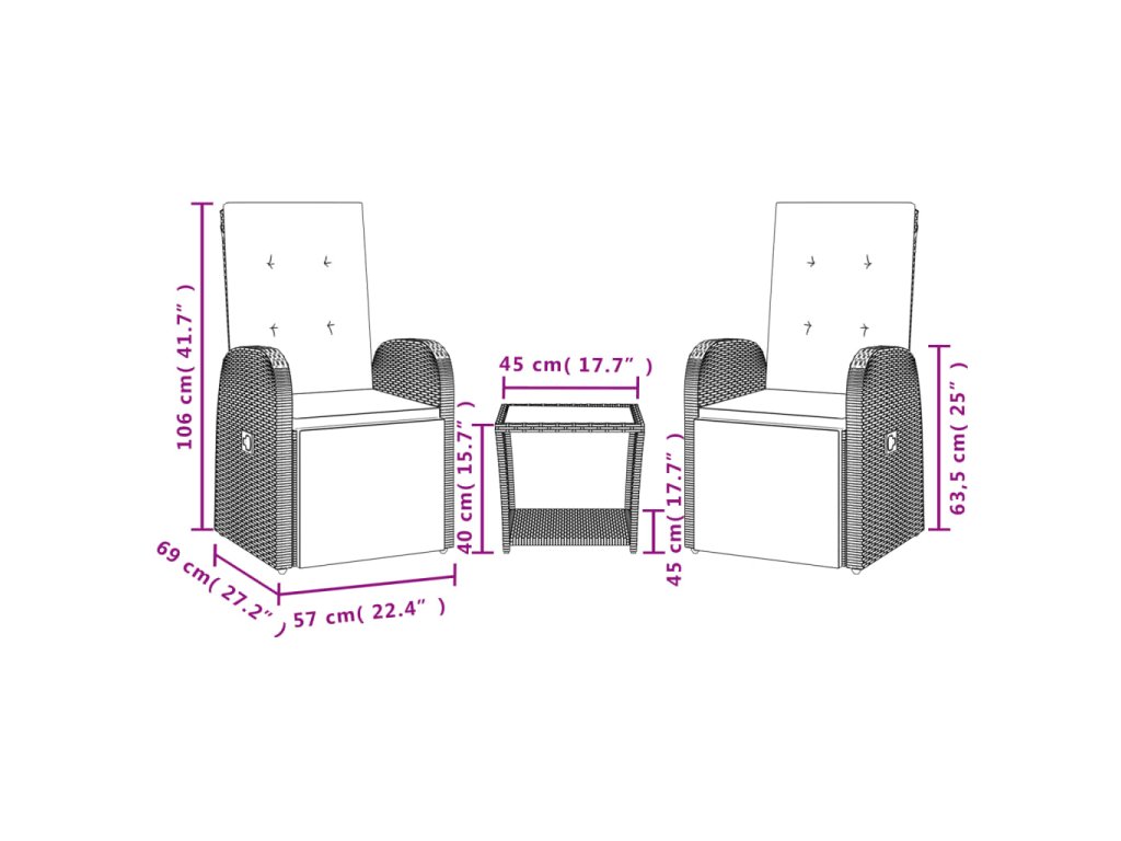 - Rozměry sezení: 57 x 69 x 106 cm (Š x H x V)