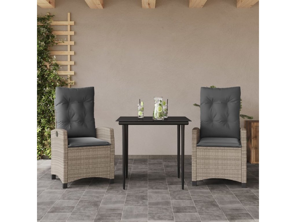 3dílný zahradní jídelní set s poduškami světle šedý polyratan 3212842