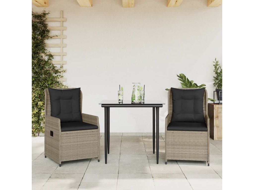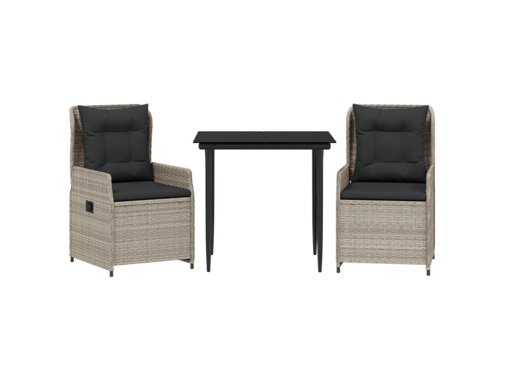 3dílný zahradní jídelní set s poduškami světle šedý polyratan 3262896