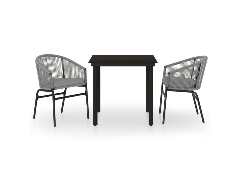Zahradní jídelní set má práškově lakovaný ocelový rám, takže je robustní a stabilní a ideální pro venkovní použití. Hladká skleněná deska stolu se snadno čistí vlhkým hadříkem a skvěle vám poslouží k podávání jídla a pití nebo k vystavení různých dekorativních předmětů. Židle jsou vyrobené z PVC ratanu, jsou proto odolné a výborně vzdorují UV záření i špatnému počasí. Každá z nich je navíc opatřená odnímatelnou hustě polstrovanou poduškou, a zpříjemní vám tak váš odpočinek.
