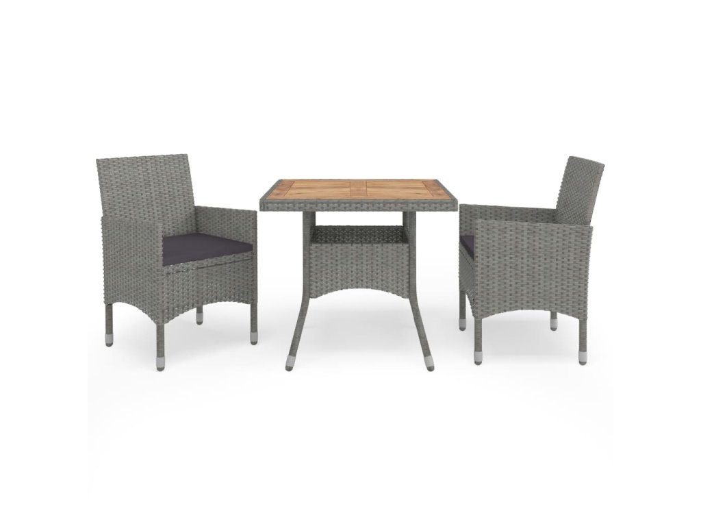 3dílný zahradní jídelní set šedý polyratan a akáciové dřevo 3058313