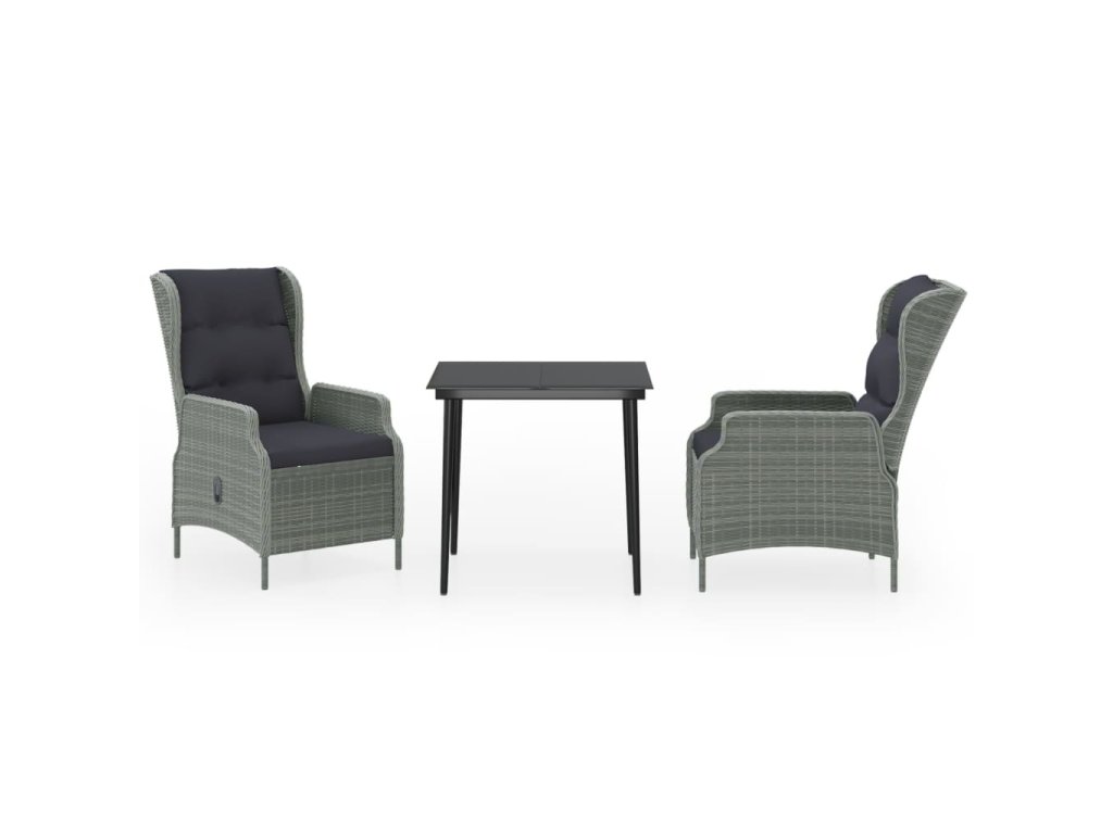 Praktický zahradní jídelní set má ocelový rám, takže je pevný a má dlouhou životnost. Polohovací židle jsou vyrobené z voděodolného PE ratanu, který nevyžaduje žádnou údržbu, hodí se proto skvěle k venkovnímu použití. Hustě polstrované podušky vám při stolování poskytnou maximální pohodlí. Potah podušky je opatřený zipem, lze ho tedy stáhnout a vyprat. Pomocí mechanismu s plynovým pístem si navíc snadno přizpůsobíte opěradlo křesla podle vlastních potřeb. Stisknutím tlačítka na boku ho sklopíte do té nejpohodlnější pozice. Hladká skleněná stolní deska, kterou jednoduše očistíte vlhkým hadříkem, je ideální k podávání jídla a pití nebo k vystavování různých dekorativních předmětů.