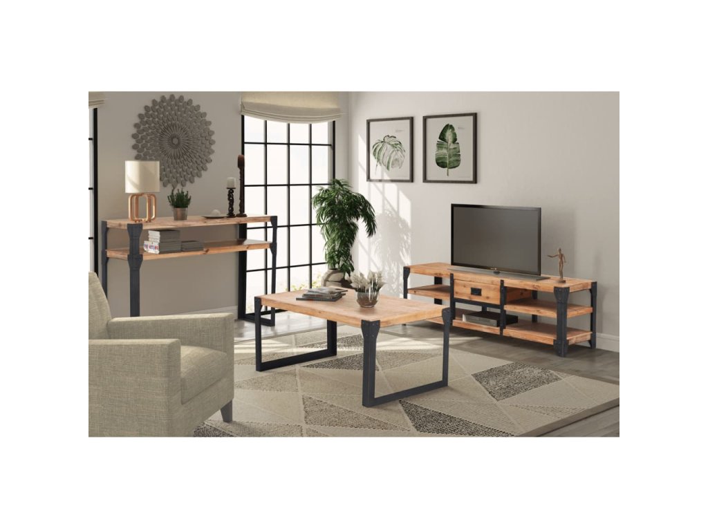 Tato kompletní sada nábytku do obývacího pokoje, která se skládá z 1 TV stolku, 1 konferenčního stolku a 1 konzolového stolku, je tak stylová, jak i praktická. Tato sada vnese do vašeho obývacího pokoje dotek industriálního šarmu.