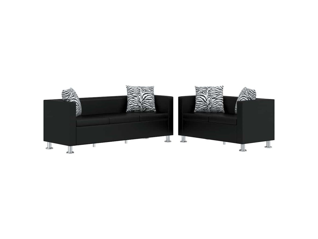 3místná a 2místná pohovka umělá kůže černá 272178