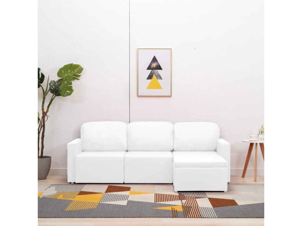 3místná modulární rozkládací pohovka bílá umělá kůže 288794