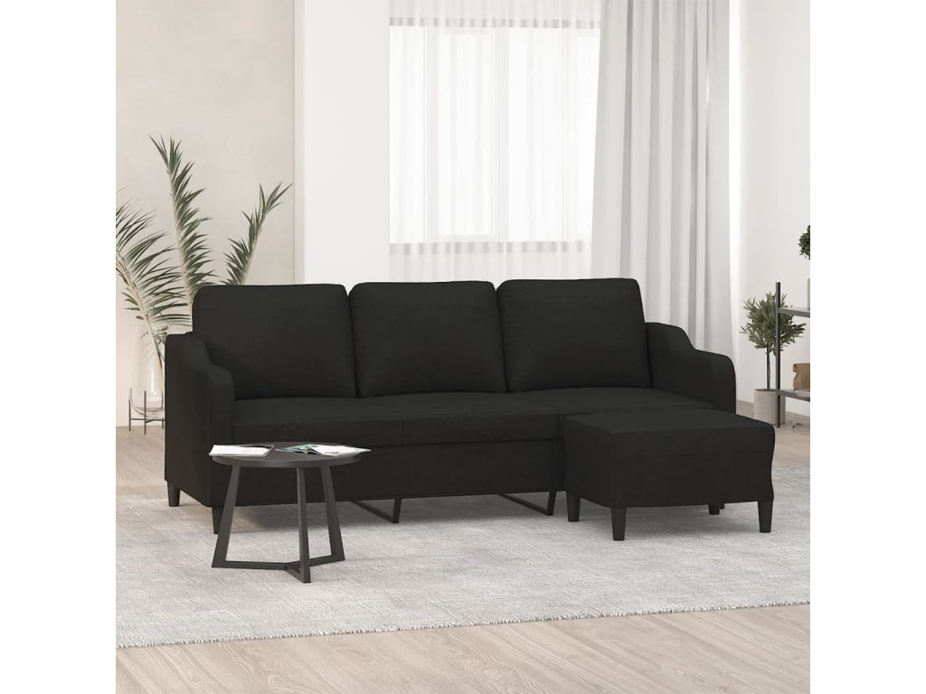 3místná pohovka s podnožkou černá 180 cm textil 3201139