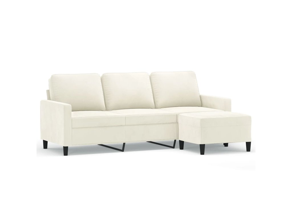 3místná pohovka s podnožkou krémová 180 cm samet 3201063