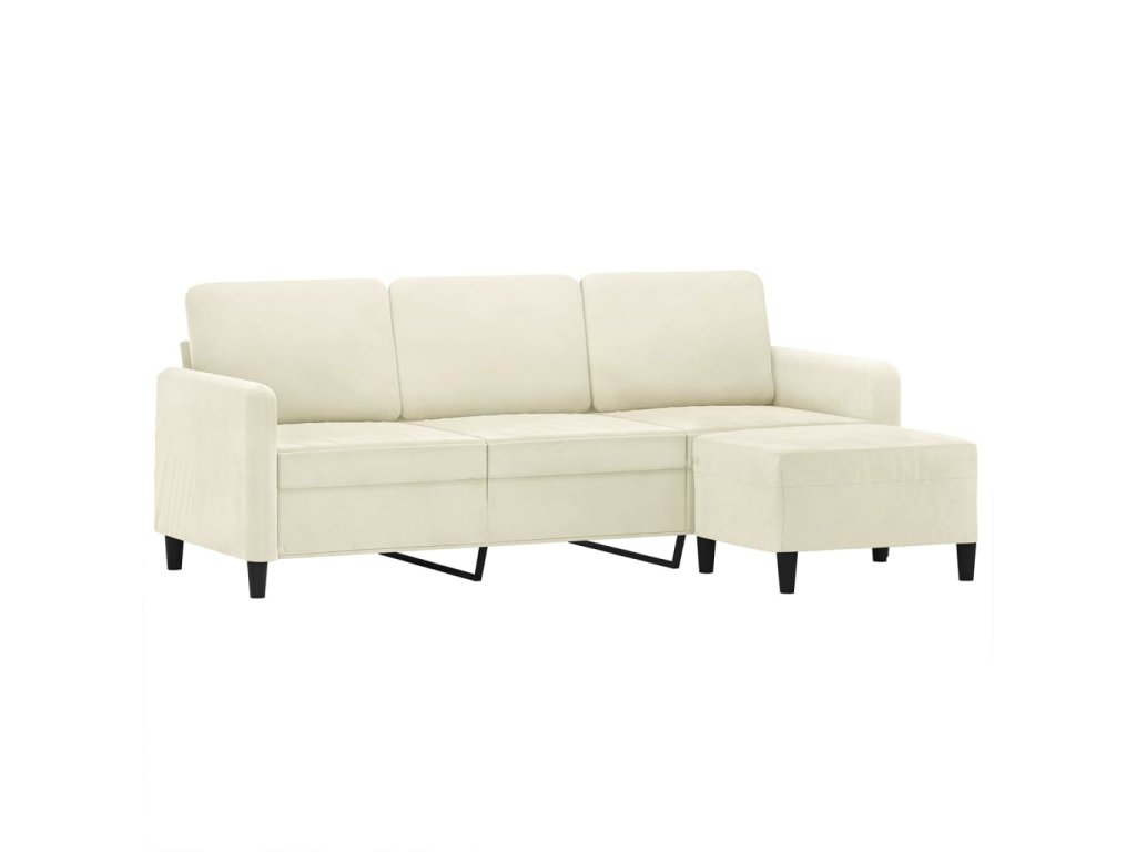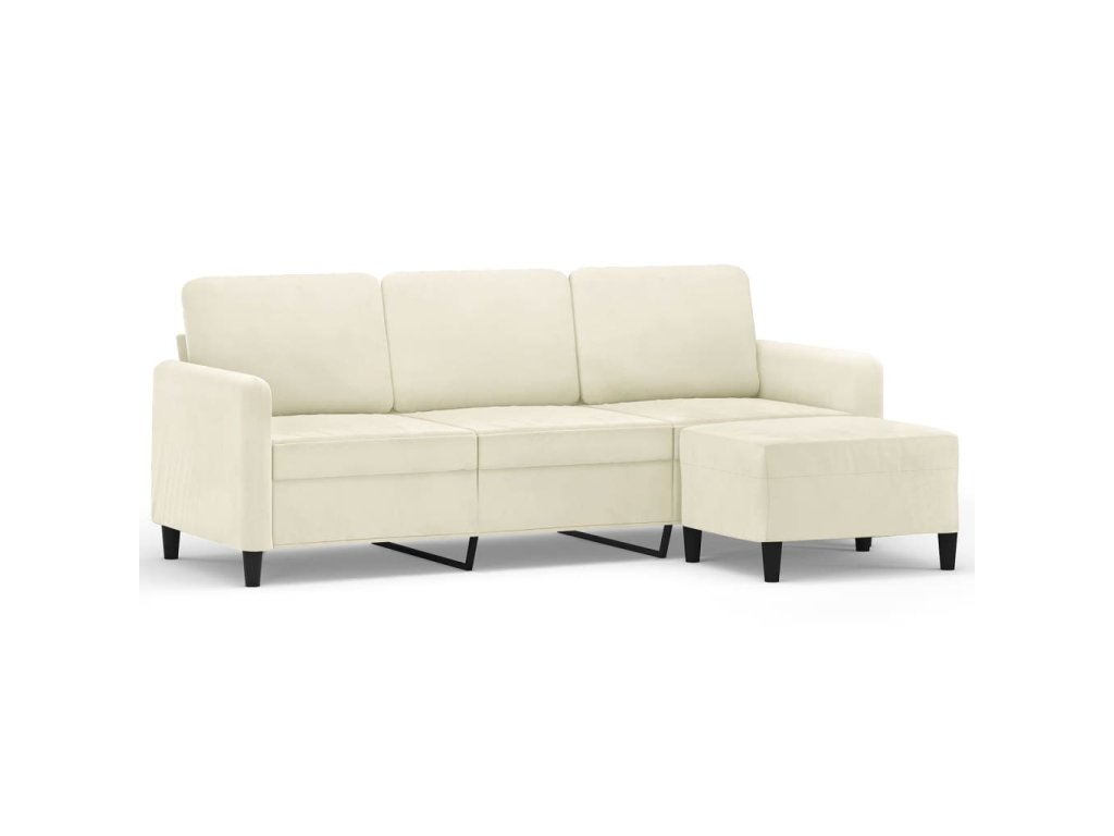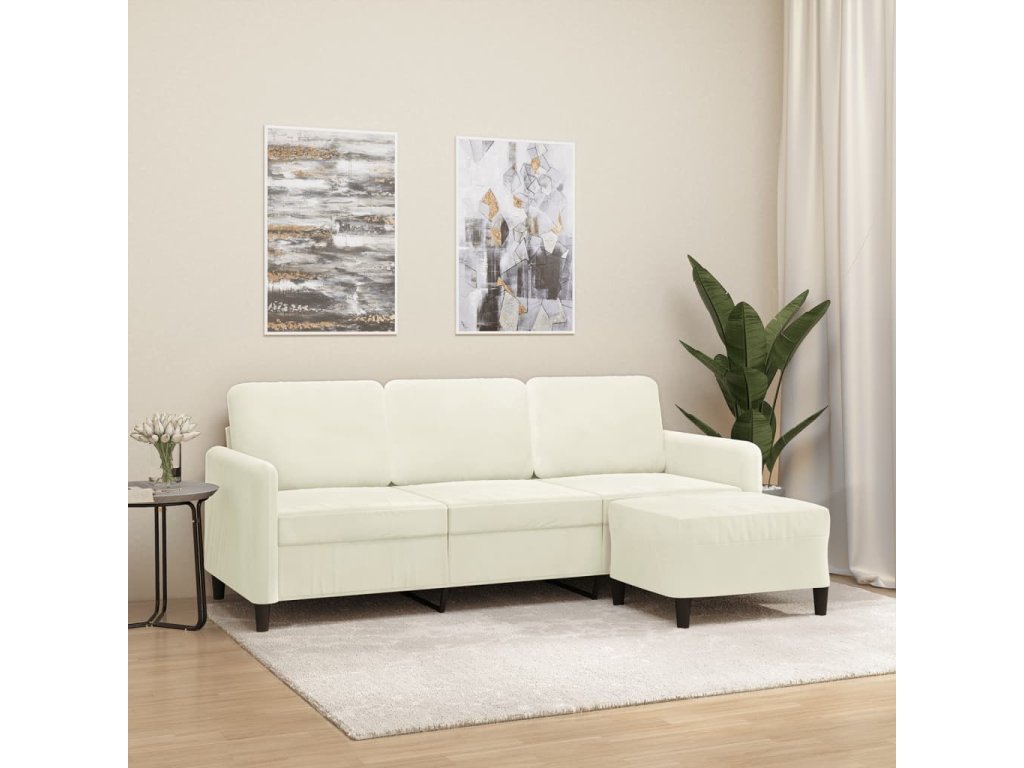 3místná pohovka s podnožkou krémová 180 cm samet 3201182