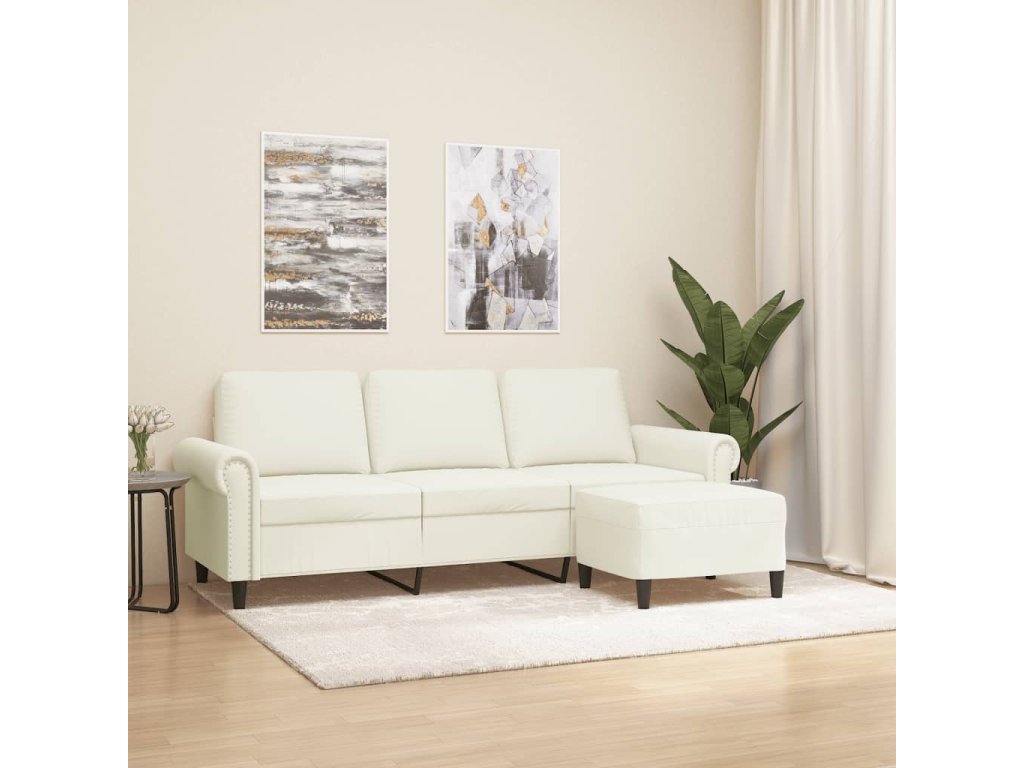 3místná pohovka s podnožkou krémová 180 cm samet 3201223