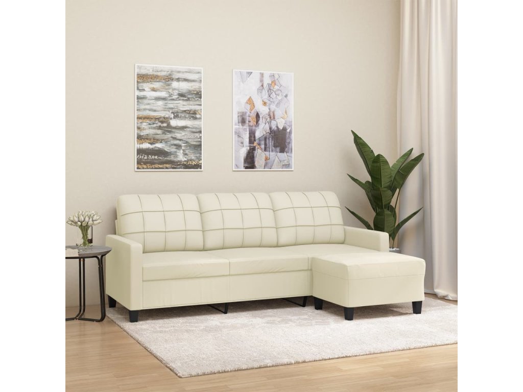 3místná pohovka s podnožkou krémová 180 cm umělá kůže 3201015