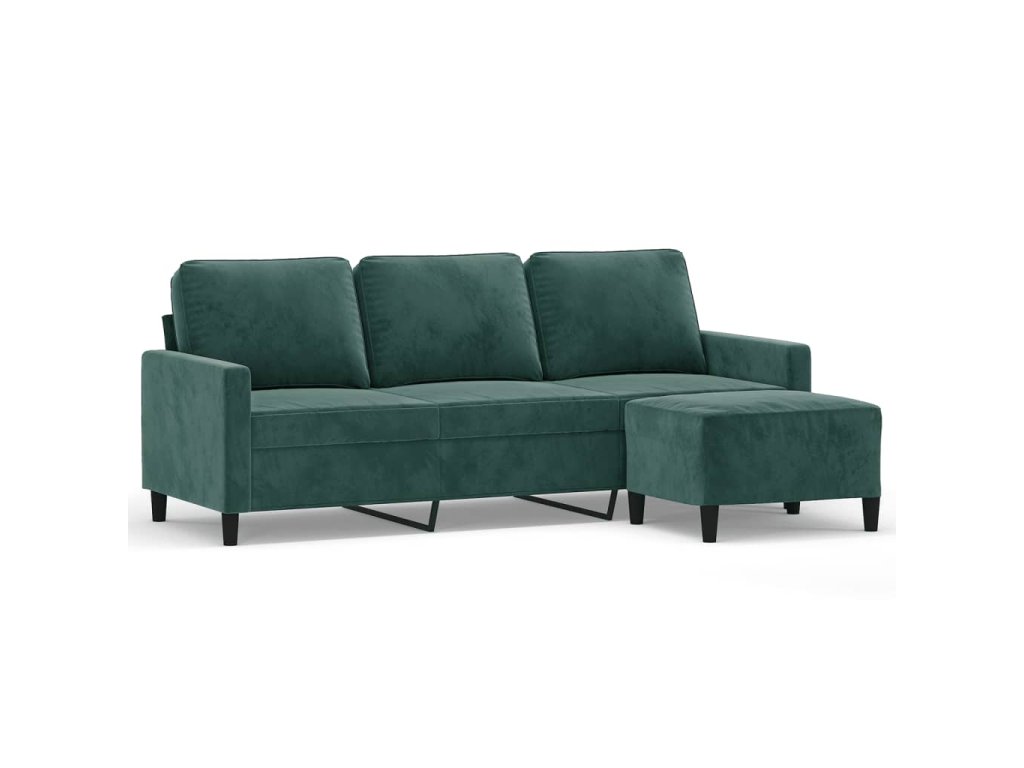 3místná pohovka s podnožkou tmavě zelená 180 cm samet 3201057