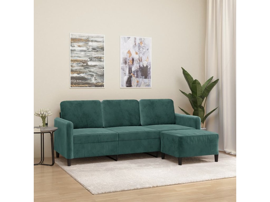 3místná pohovka s podnožkou tmavě zelená 180 cm samet 3201176