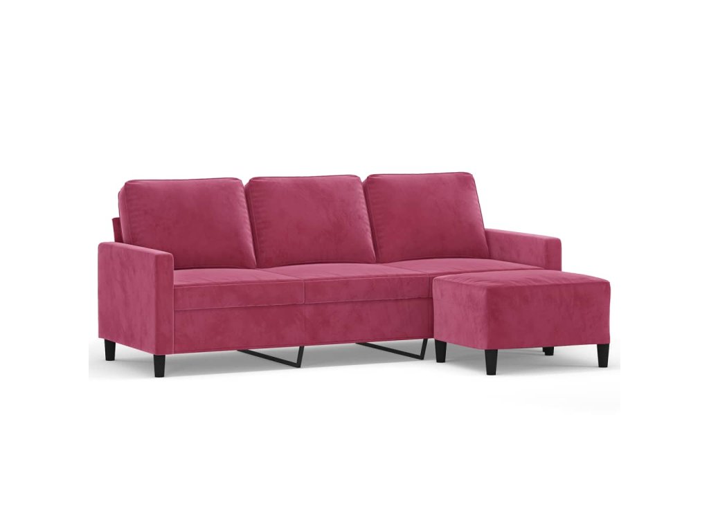 3místná pohovka s podnožkou vínová 180 cm samet 3201059