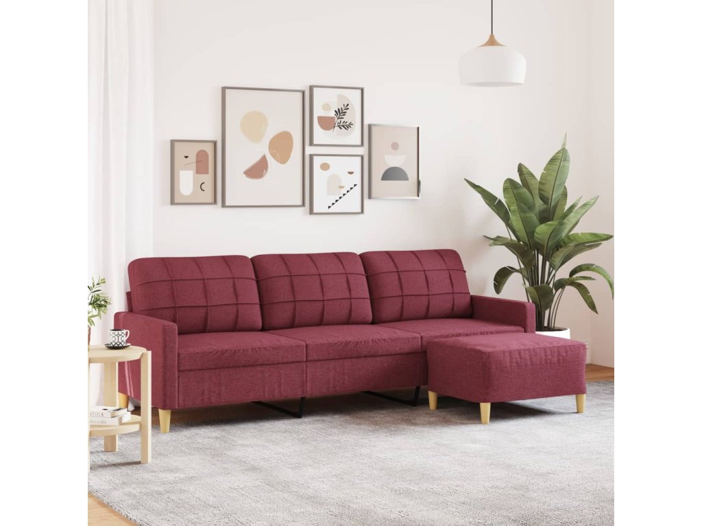 3místná pohovka s podnožkou vínová 210 cm textil 3278255