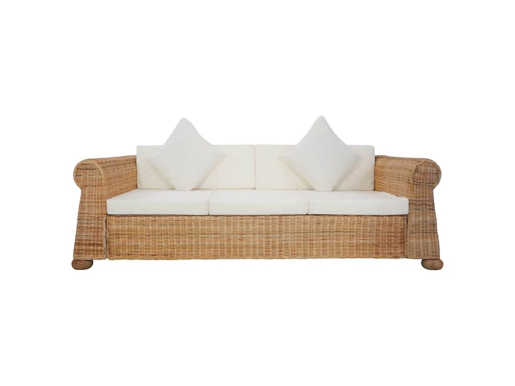 3místná pohovka s poduškami přírodní ratan 283074
