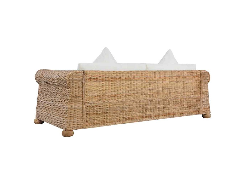 Vzhledem k originálnímu ratanovému materiálu se pohovka snadno čistí, je mimořádně odolná a vhodná pro každodenní použití. Má robustní dřevěný rám, který je velmi odolný a stabilní. Silné podušky na sedák a opěradlo a polštáře jsou mimořádně pohodlné a mají snímatelné potahy, takže se dají snadno prát. Široké područky vám navíc zajistí pohodlí při sezení.