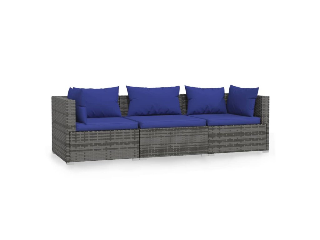 3místná pohovka s poduškami šedá polyratan 317566