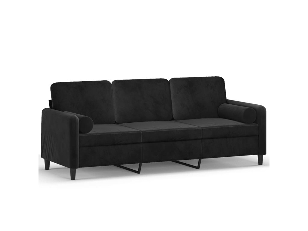 3místná pohovka s polštáři černá 180 cm samet 3200896