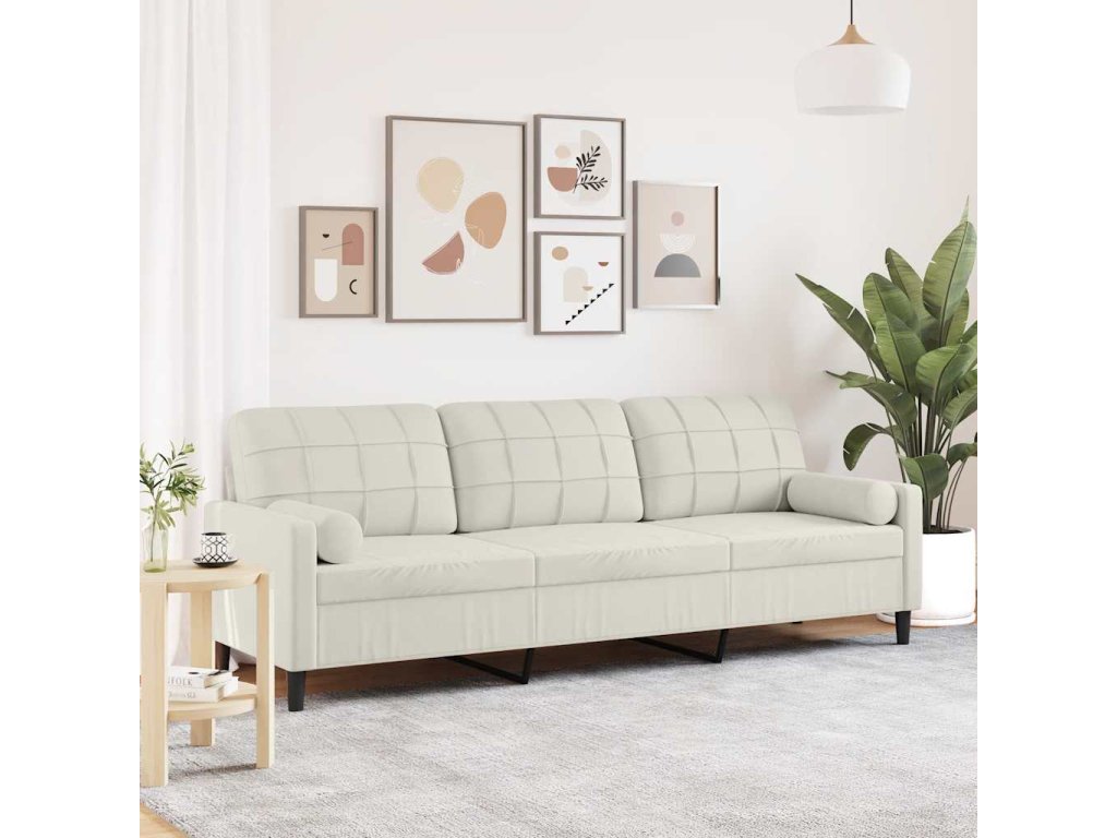 3místná pohovka s polštáři krémová 210 cm samet 3278247