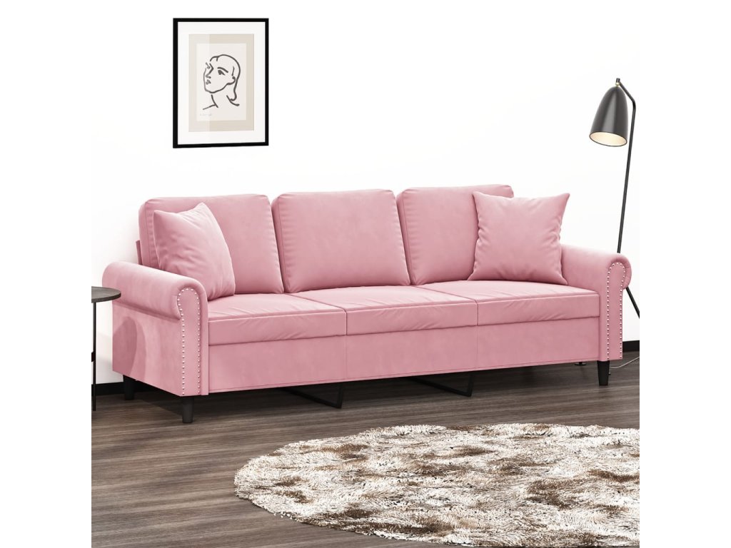 3místná pohovka s polštáři růžová 180 cm samet 3200958