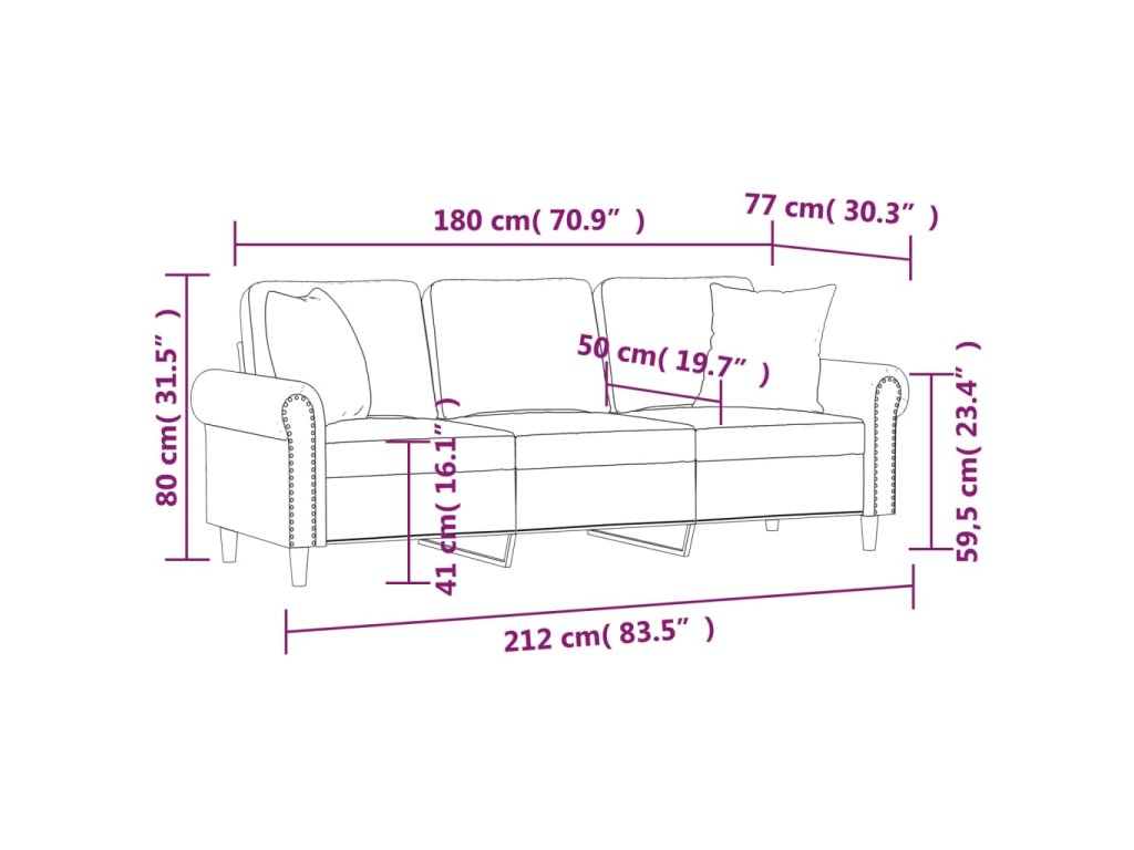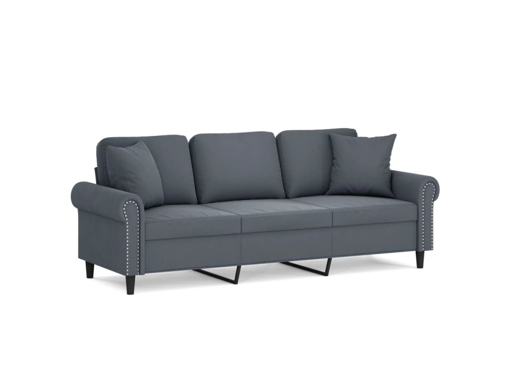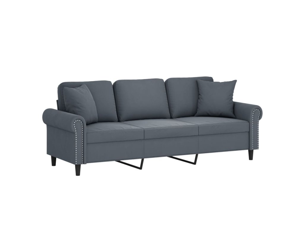 3místná pohovka s polštáři tmavě šedá 180 cm samet 3200956