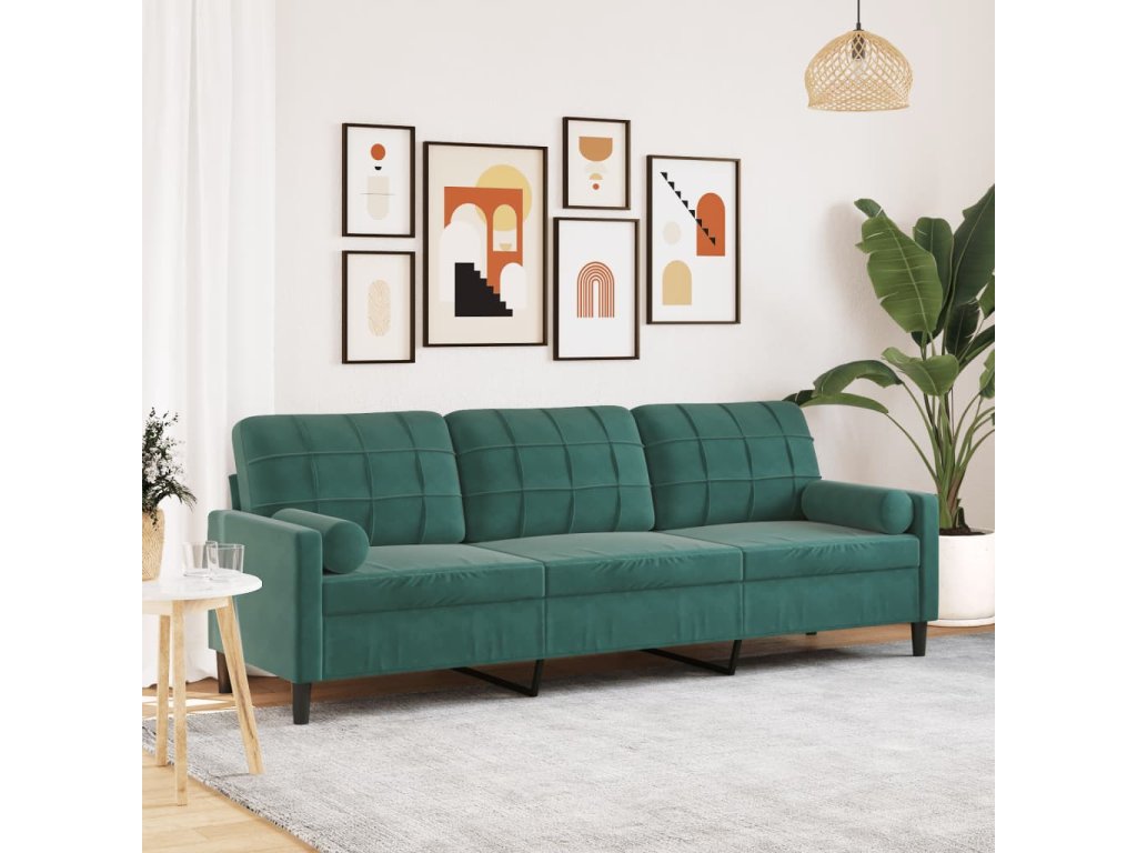 3místná pohovka s polštáři tmavě zelená 210 cm samet 3278241