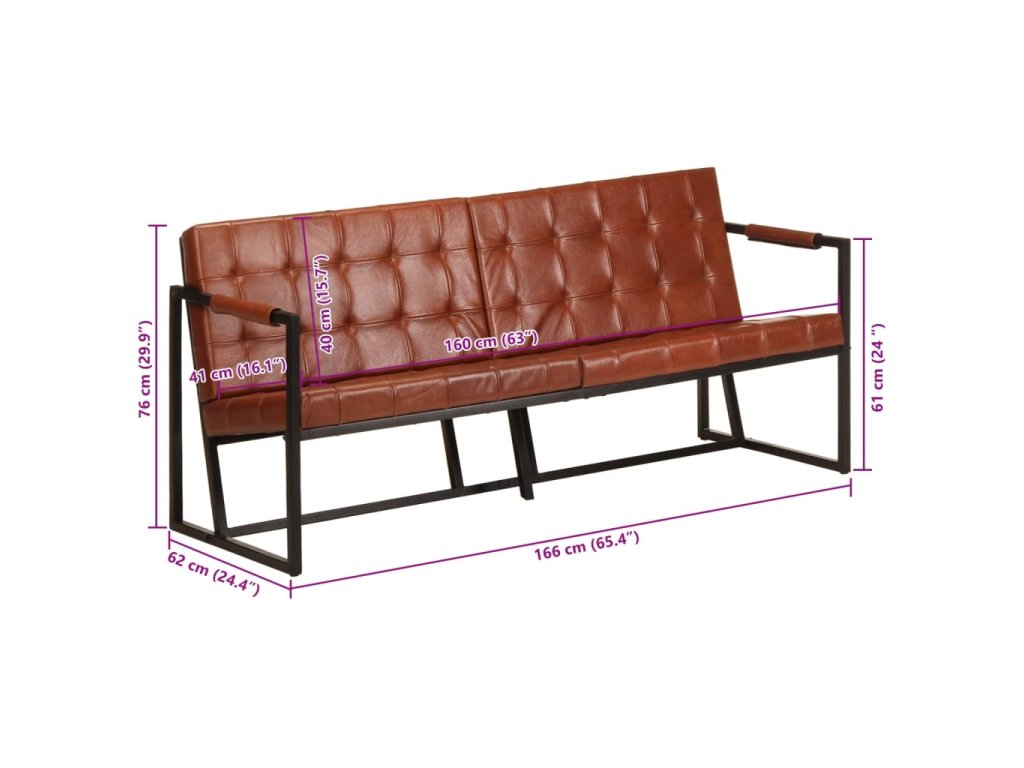 3místná sedačka hnědá pravá kozí kůže 288284
