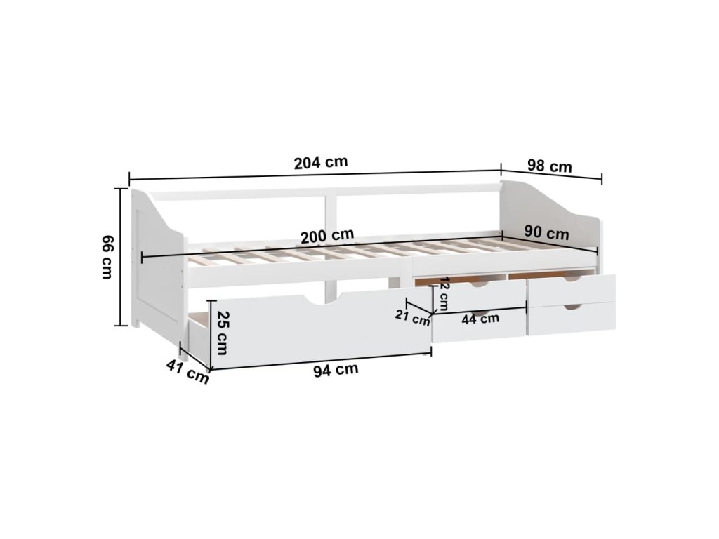 3místná válenda se zásuvkami bílá masivní borovice 90 x 200 cm 322170