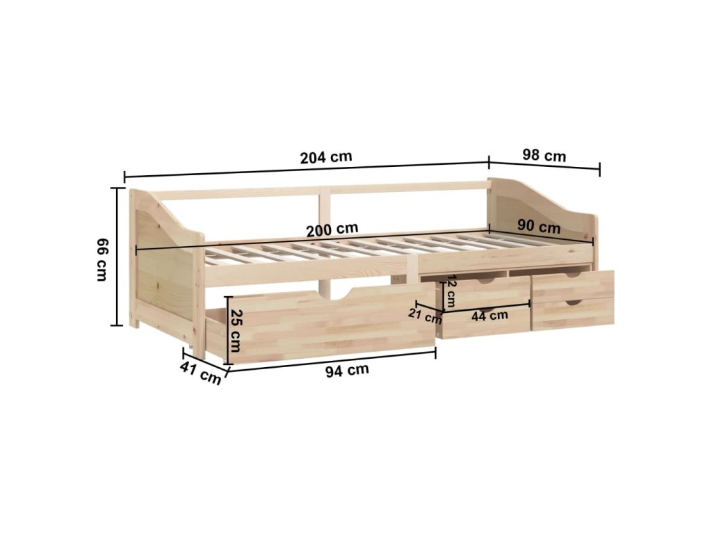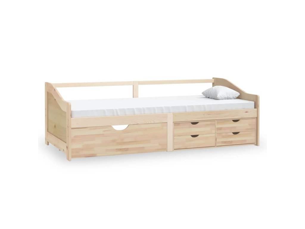 Rozkládací postel je vyrobená z masivního borového dřeva, takže je velice odolná a stabilní. Robustní lamely poskytují potřebnou oporu a zároveň zajišťují maximální pohodlí. Součástí je také 5 zásuvek, kam si můžete uložit poskládané oblečení, hračky apod.